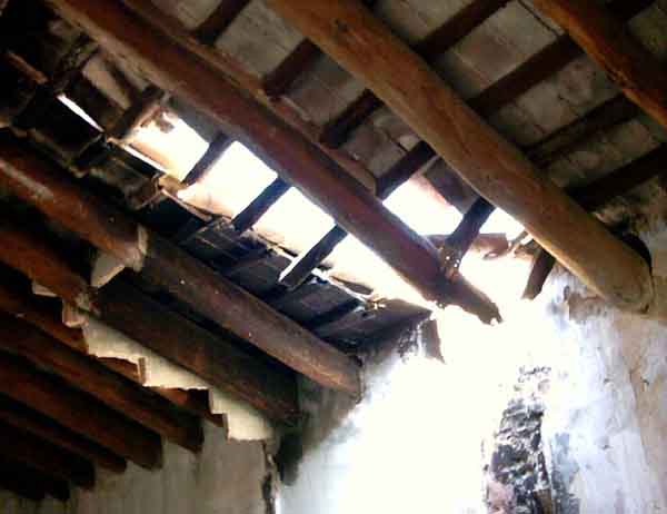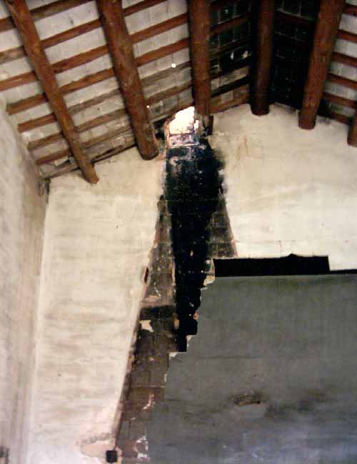 The pics show two holes where two of the chimneys were. One of them is pretty bad. It looks like somebody used the fireplace when there was no conduit for the smoke any more and two beams burnt.
